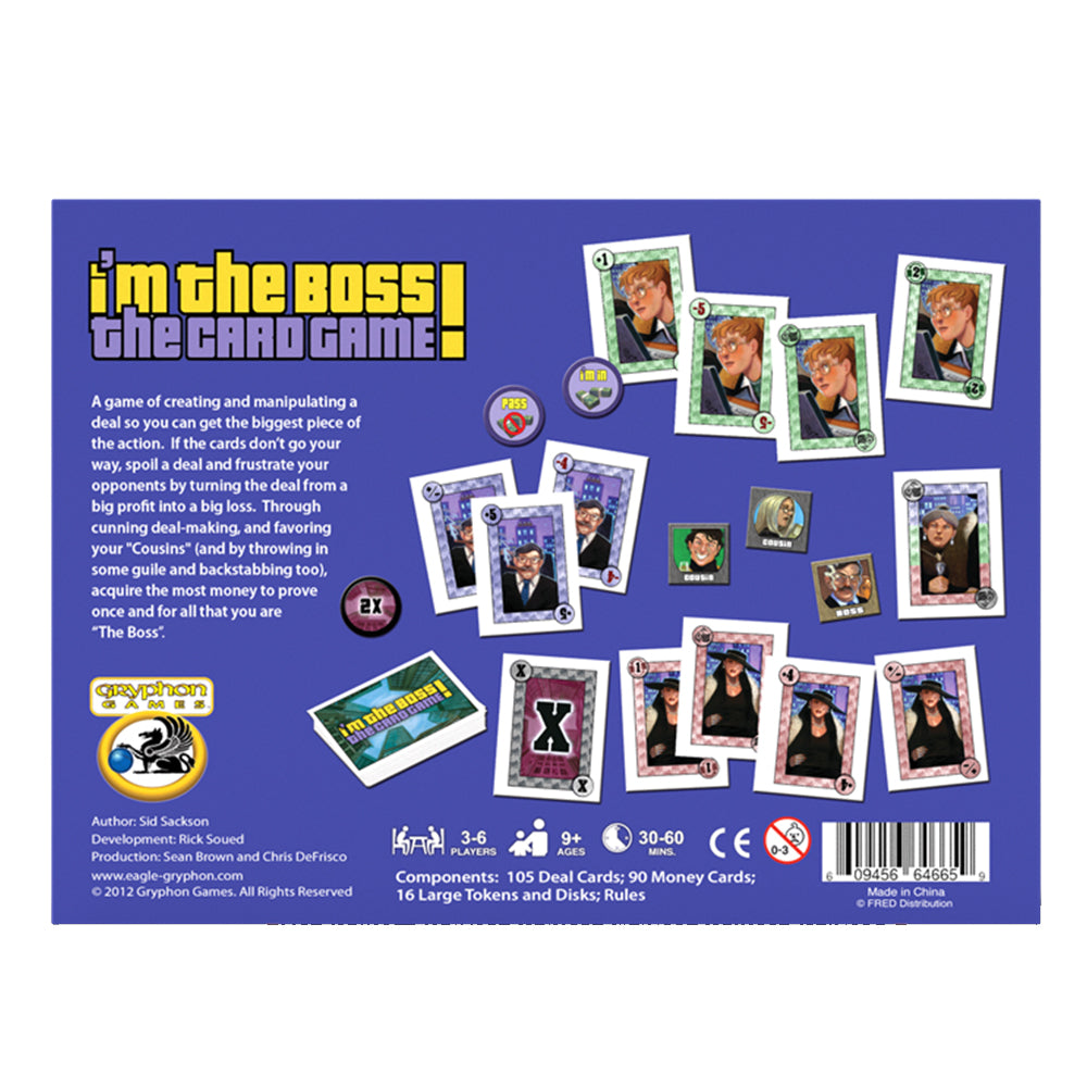 I'm the Boss!: The Card Game, is a version of Sid Sackson's classic negotiation game I'm the Boss! that's based on his original design of that game, is still all about negotiation, with players trying to end up with more money in hand than anyone else.